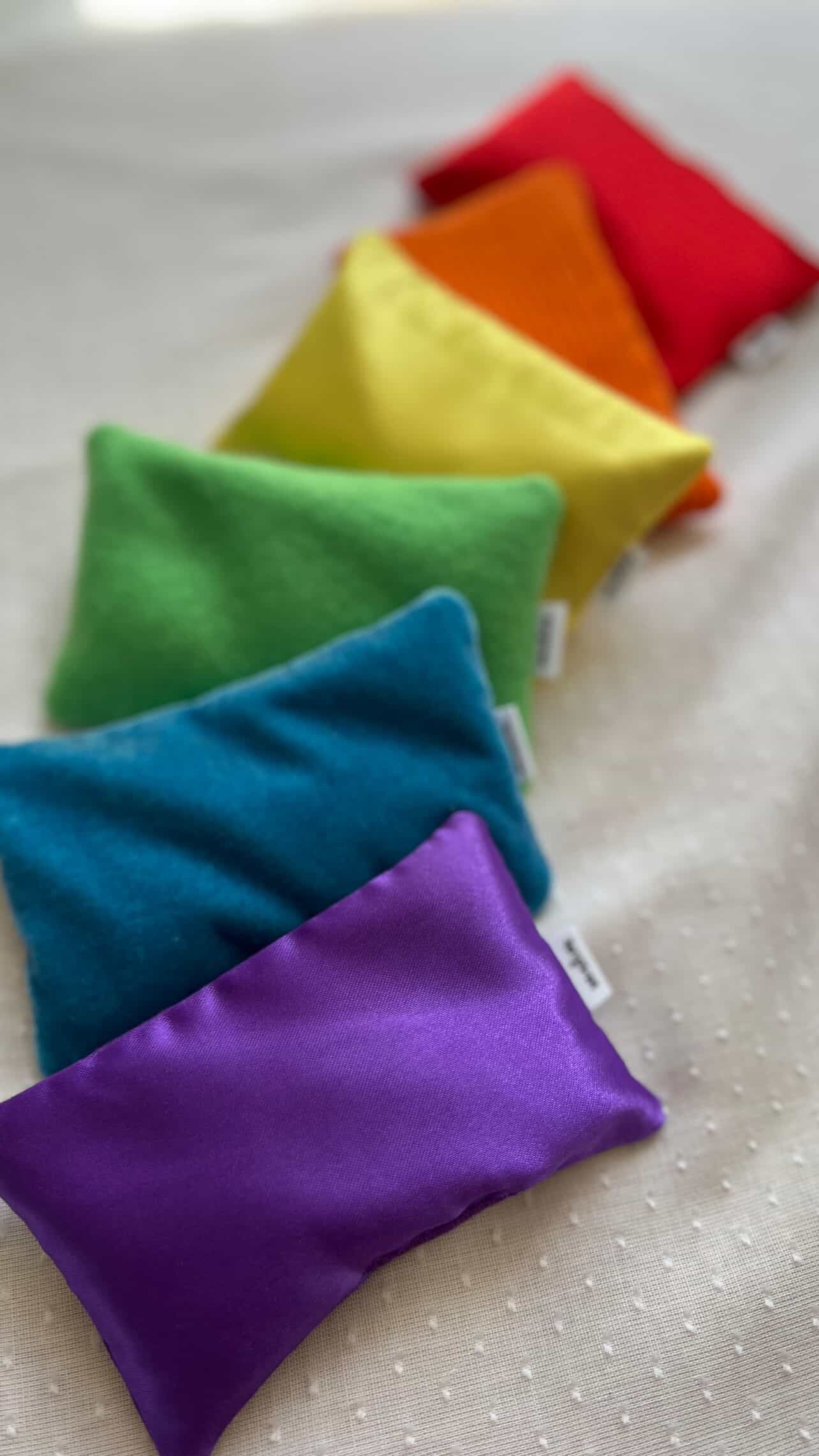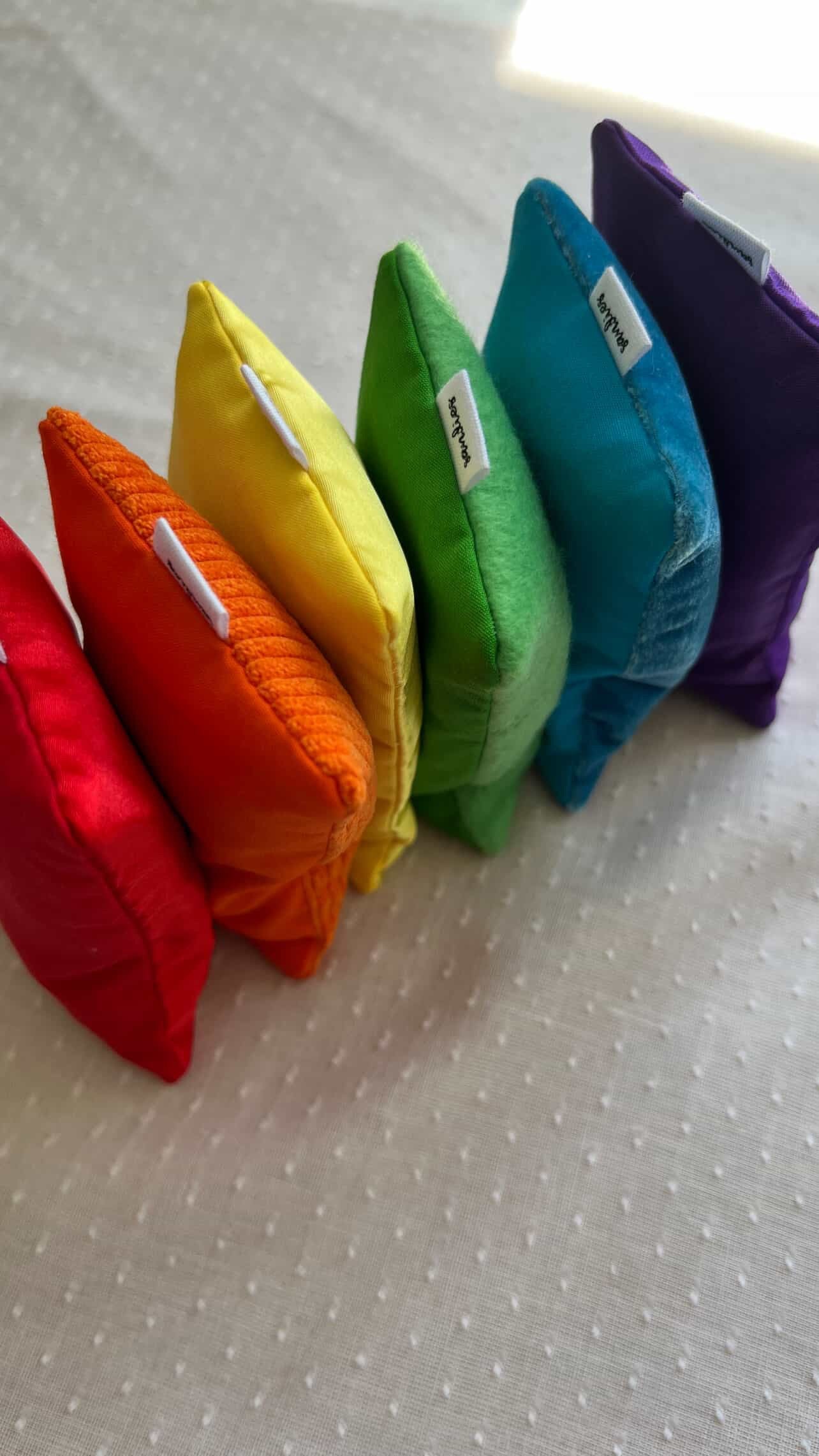 This Rainbow Sandies set was designed specifically for Sunny Kids Toy Store and includes 6 Sandies in the colours of the rainbow! 🌈 This set features a different textured fabric on one side, offering an incredible sensory play experience. Colours included - ❤️🧡💛💚💙💜 - making it the perfect set for colour recognition!