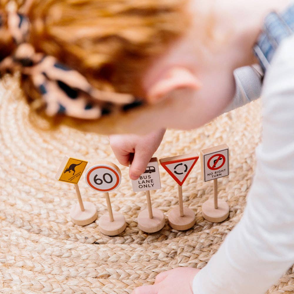Make car playtime a little more Aussie with our classic wooden traffic sign set. Designed to bring a touch of local flavour to your child’s road or city play setup, this set includes 5 Iconic Australian Road Signs, each with a reversible design on the back to match the mood or scene of the day. From kangaroo & koala crossings to speed cameras and road warnings, it’s a playful way to introduce kids to real-world rules of the road, minus the police fines!